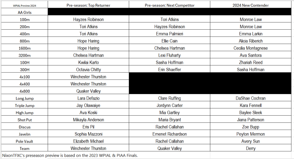 *NixonTFXC’s preseason preview is focused on the 2023 WPIAL & PIAA Finals. I didn’t consider the indoor season because some PA teams don’t participate in indoor track and field.*